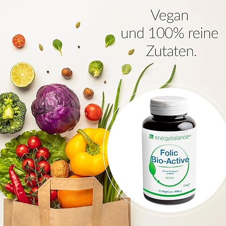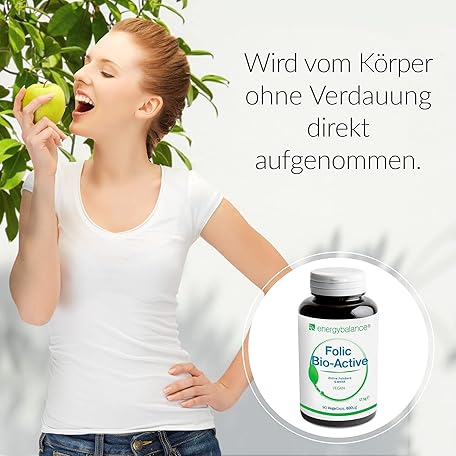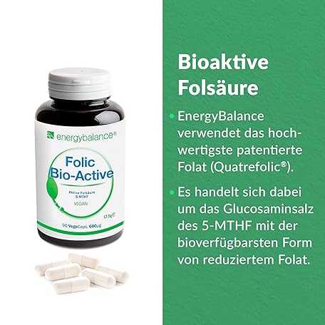 Sản phẩm EnergyBalance Folic Capsules with Folic Acid, Pregnancy, Desire for Children, Vitamin B9, 5-MTHF Quatrefolic, High Organic Availability, Vegan, Quality from Switzerland, 90 VegeCaps of 600 μg đang được bán với giá ưu đãi là $22.6066 tại nước Đức.