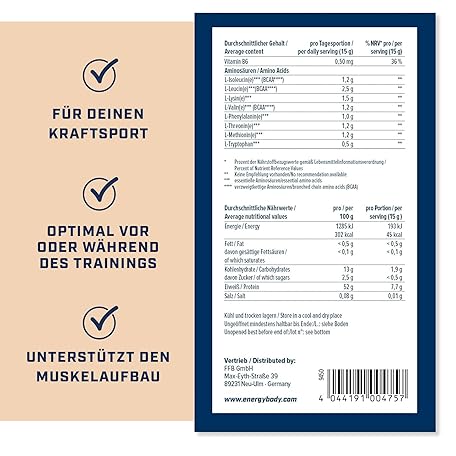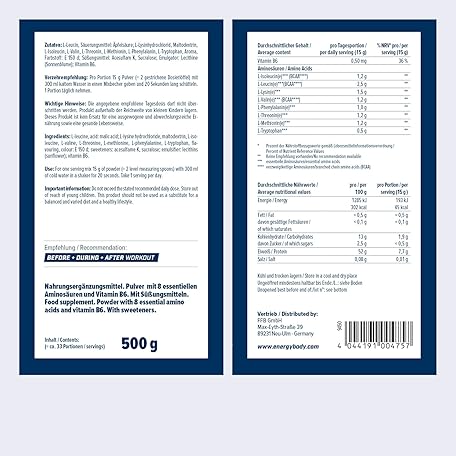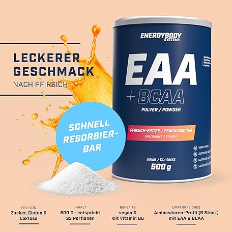 Sản phẩm Energybody EAA Powder with BCAA 500g Peach Iced Tea - EAAs Powder Contains All 8 Essential EAA Amino Acids - Vegan & Sugar-Free đang được bán với giá ưu đãi là $31.5446 tại nước Đức.