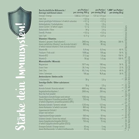 Thông tin sản phẩm Energybody Immune Active Vitamin Drink with Superfoods, 300 g Powder, 30 Servings with Lemon Flavour, Dietary Supplement to Support the Immune System with Important Vitamins and Minerals