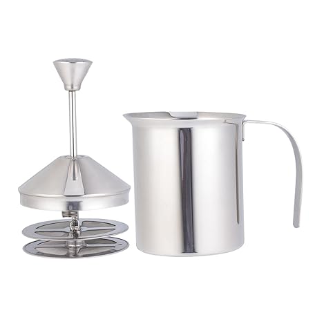 • EPIGEIST Edelstahl Milchaufschäumer Doppeltes Sieb Manuell Milchmixer für Dicken Milchschaum Zuhause und Hitzebeständig Langlebig Geeignet für Vollmilch Ziegenmilch und Mehr