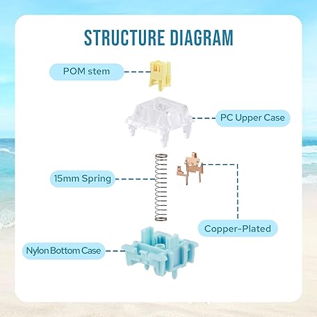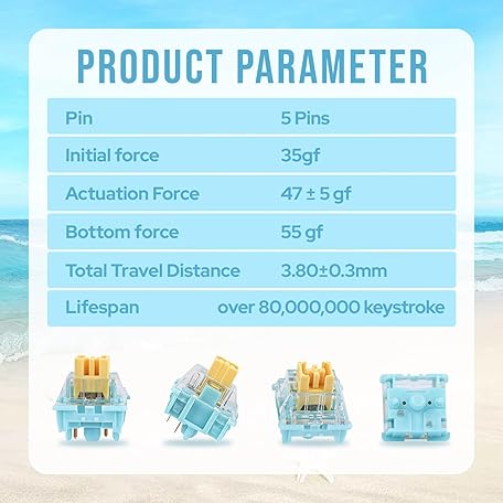Thông tin sản phẩm EPOMAKER Sea Salt Silent Mechanical Keyboard Switch Set, Pre-Oiled Linear Switch with LED Slot, 50g, 35 Pieces for Customizing Mechanical Gaming Keyboards