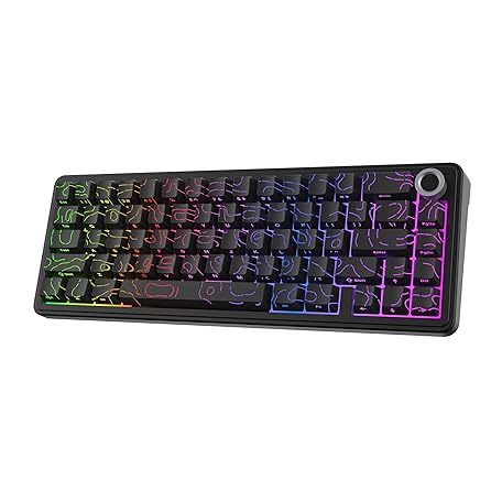 Thông tin sản phẩm EPOMAKER X Aula F65 PRO Wireless Mechanical Gaming Keyboard, Hot-Swappable, Knob and Shine-Through PBT Keycap, RGB, Bluetooth/2.4GHz Wireless, QWERTY US, 65% Layout (Black, Icesoul Switch)