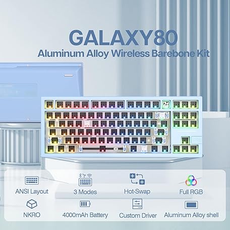 Thông tin sản phẩm EPOMAKER x Feker Galaxy80 Gaming Mechanical Keyboard Kit Gasket, Made of Aluminium Alloy Barebone Kit, with Hot-Swap-Friendly, NKRO, for Win/Mac/Gamer (Blue, Wireless Kit)