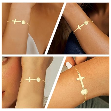 Sản phẩm Esmoly Women's Silver Cross Bracelet, 18 K Gold-Plated Bracelet with Letters, Gifts for Women and Girls đang được bán với giá ưu đãi là $13.8321 tại nước Đức.