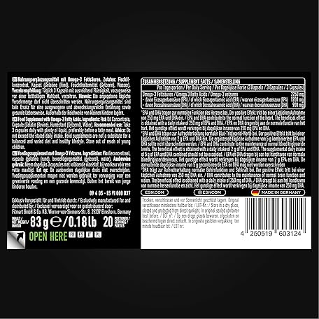 Sản phẩm ESN Esn Super Omega 3 Capsules 1000 mg Pure Sea Fish Oil Essential Fatty Acids Epa Eicosapentaenoic Acid Dha Docosahexaenoic Acid Portions Made in Germany FID34019 90 đang được bán với giá ưu đãi là $20.6337 tại nước Đức.