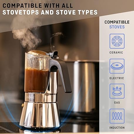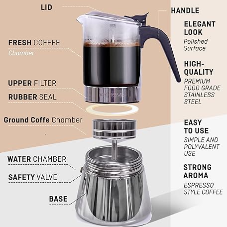 Sản phẩm Espresso Maker Classic Italian Percolator Moka Pot 360 ml - Luxury Crystal Glass and Stainless Steel đang được bán với giá ưu đãi là $72.6376 tại nước Đức.