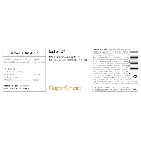 Sản phẩm Ester C® – Non-Acidic Vitamin C – Patented – Helps Reduce Fatigue and Strengthen the Immune System – Easily Digestible – Vegan – Gluten Free Supersmart đang được bán với giá ưu đãi là $50.1945 tại nước Đức.
