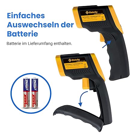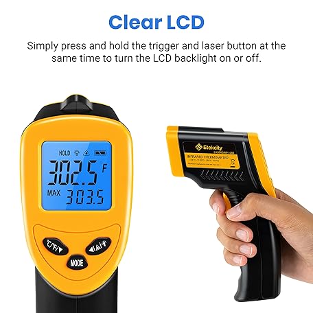 Thông tin sản phẩm Etekcity Infrarot Thermometer -50 bis +610°C, Digital IR Pyrometer berührungslos Temperaturmessgerät, LCD Beleuchtung (Nicht für Menschen) für Kochen/Pizza Oven/Gefrierschrank/Industrie