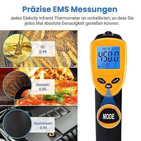 Thương hiệu Etekcity là cái tên nổi tiếng được rất nhiều khách hàng trên thế giới chọn lựa. Với kiểu dáng đẹp mắt, sang trọng, sản phẩm Etekcity Infrarot Thermometer -50 bis +610°C, Digital IR Pyrometer berührungslos Temperaturmessgerät, LCD Beleuchtung (Nicht für Menschen) für Kochen/Pizza Oven/Gefrierschrank/Industrie là sự lựa chọn hoàn hảo nếu bạn đang tìm mua một món cho riêng mình.