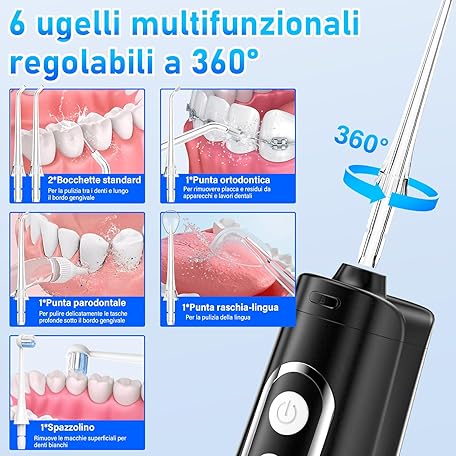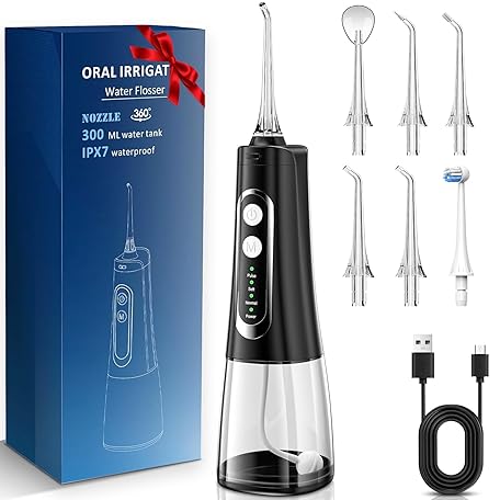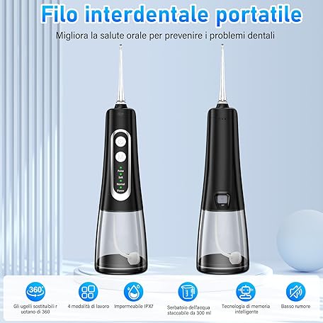 Thông tin sản phẩm ETELIAR Wireless Oral Irrigator, Electric Tooth Cleaner, Portable Water Flosser, 4 Modes & 6 Nozzles, 300 ml Dental Irrigator, Oral Irrigator, Test Winner for Oral Care & Cleaning, Travel Home