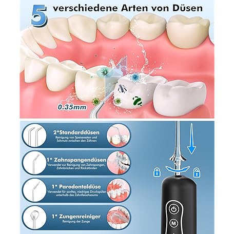 Sản phẩm ETROBOT Munddusche Kabellos Elektrischer Zahnreiniger, 2025 Elektrisch Water Flosser, 4 Modi & 5 Düsen Zahnzwischenraumreiniger, IPX7 Wasserdicht, Munddusche Testsieger, Zahndusche für Mundpflege đang được bán với giá ưu đãi là $25.3316 tại nước Đức.