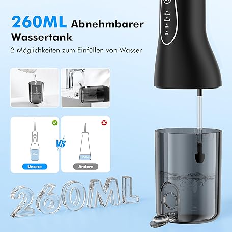 Thông tin sản phẩm ETROBOT Munddusche Kabellos Elektrischer Zahnreiniger, 2025 Elektrisch Water Flosser, 4 Modi & 5 Düsen Zahnzwischenraumreiniger, IPX7 Wasserdicht, Munddusche Testsieger, Zahndusche für Mundpflege
