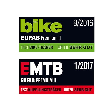 Sản phẩm EUFAB 11521 Fahrradträger PREMIUM 2, E-Bike geeignet, komplett vormontiert, Diebstahlschutz, für 2 Fahrräder, für Anhängekupplung, Schwarz, Silber đang được bán với giá ưu đãi là $372.4421 tại nước Đức.