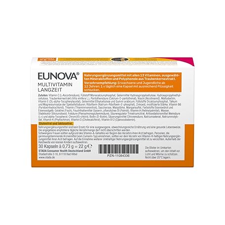 Sản phẩm Eunova Long-term Dietary Supplement with All 13 Vitamins with Important Minerals and Carotenoids 1 x 30 Capsules đang được bán với giá ưu đãi là $17.6253 tại nước Đức.