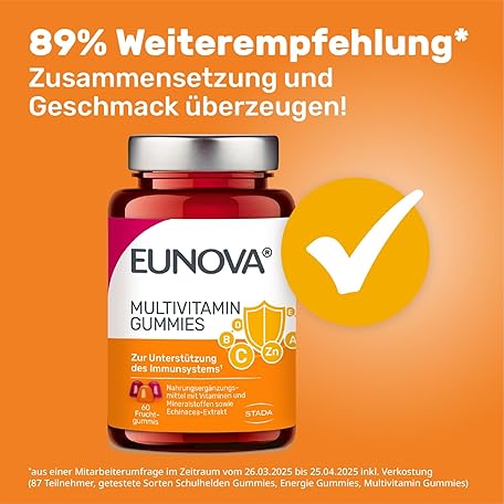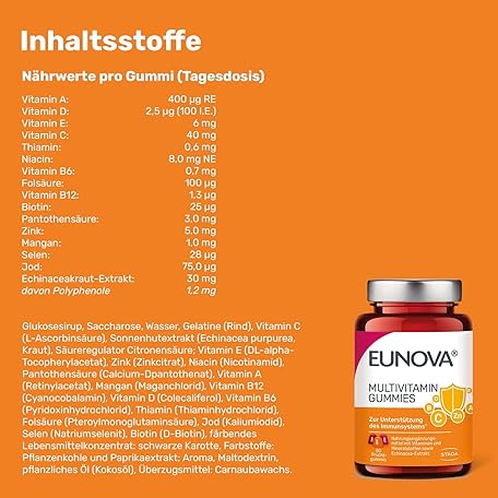 Thương hiệu Eunova là cái tên nổi tiếng được rất nhiều khách hàng trên thế giới chọn lựa. Với kiểu dáng đẹp mắt, sang trọng, sản phẩm Eunova Multivitamin Weichgummis 60 St là sự lựa chọn hoàn hảo nếu bạn đang tìm mua một món cho riêng mình.