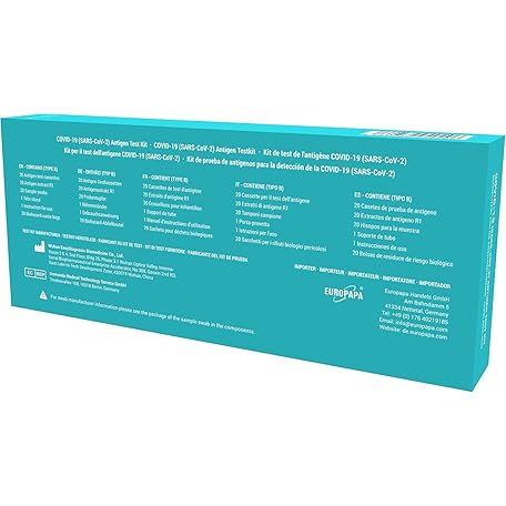 EUROPAPA® 20 x Corona Laientest Self-Tests, COVID-19 Antigen Test, for SARS-CoV-2, Quick Test, Test Cassette, Sample Swab, Antigen Extract, Individually Packed
