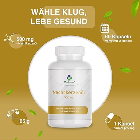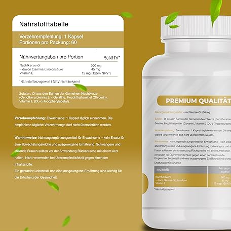Sản phẩm Evening Primrose Oil - 60 Capsules - High Dose of 500 mg per Capsule - Premium: 9% Gamma Linolenic Acid GLA, with Natural Vitamin E and Cold Pressed - Laboratory Tested đang được bán với giá ưu đãi là $11.6848 tại nước Đức.