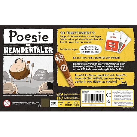 Thông tin sản phẩm Exploding Kittens, Poetry for Neanderthals, Party Game, Card Game, 2+ Players, from 7+ Years, 15 Minutes, German