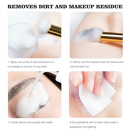 Thông tin sản phẩm Eyelash Extension Cleaner 50ml + Brushes + Rinse Bottle, Eyelash Foam Shampoo for Extensions and Natural Eyelashes, Sulphate Free, Salon and Home Use