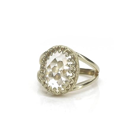 Faceted Gemstone Rings for Women - Oval Natural Crystal Quartz in 925 Sterling Silver Band - Wedding, Birthday, Fashion Ring - Elegant 14K Ring for All Occasions