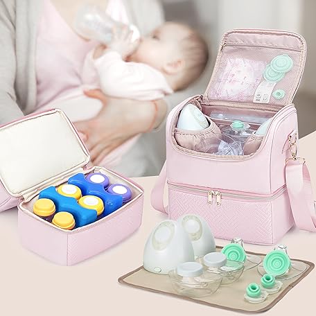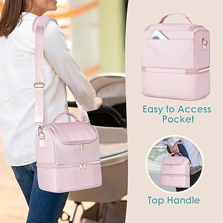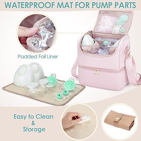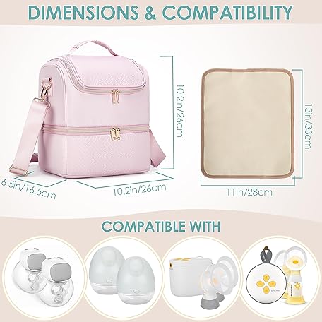 Thông tin sản phẩm Fasrom Breast Pump Bag with Cooler Compatible with Elvie and Medela Pumps, Portable Cooler Bag for Storing Breast Milk with Shoulder Strap and Waterproof Mat for Working Mothers, pink, Breast Pump