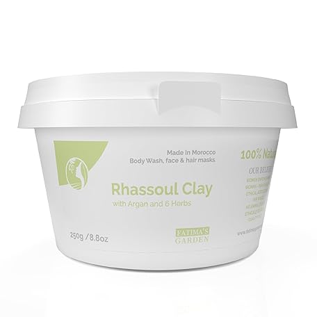 Fatima's Garden Rhassoul Clay with Argan & Herbs - Cleansing & Detox, for Face & Hair, 250 g