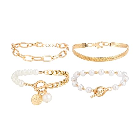 Sản phẩm fdsmall Gold Chain Link Bracelet Set for Women - 14K Plated Pearl Bracelet, Snake Bracelet, Paperclip Link Chain Bracelets - Stackable Trendy Jewellery đang được bán với giá ưu đãi là $11.3142 tại nước Đức.