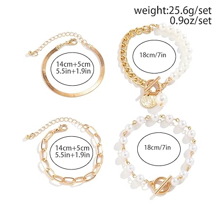 Thông tin sản phẩm fdsmall Gold Chain Link Bracelet Set for Women - 14K Plated Pearl Bracelet, Snake Bracelet, Paperclip Link Chain Bracelets - Stackable Trendy Jewellery