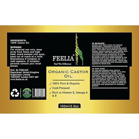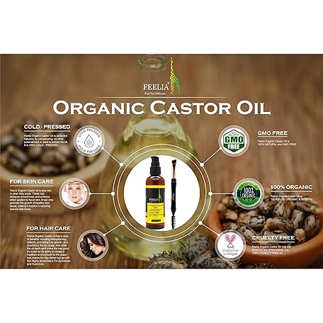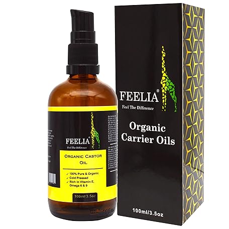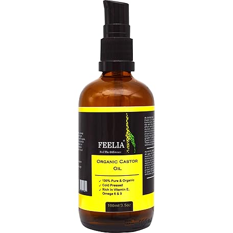 Feelia - Organic Castor Oil - Cold Pressed - Rich in Vitamin E, Omega 6 and 9 - Fragrance Free - 100% Pure and Organic