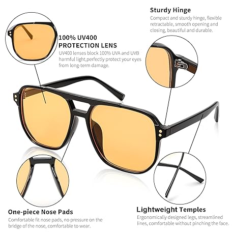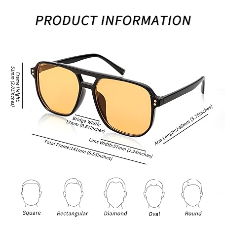 Thông tin sản phẩm FEISEDY Retro Square Sunglasses, for Women and Men, ‘70s, Vintage, Trendy Glasses, Classic, with Double Bridge, UV400 Protection, B2835
