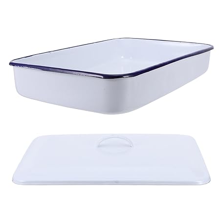 FELTECHELECTR Emailliertes Labor Tablett 30X20X5cm Weiß mit Deckel Hitzebeständiges Instrumenten und Probenhandhabungs Tablett für Klinik und Labor