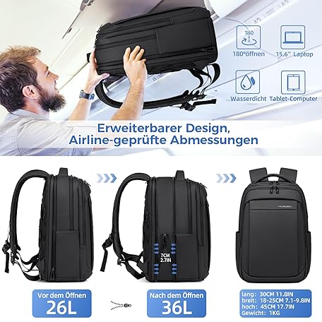 Sản phẩm Fenree.geer Men's Backpack - Hand Luggage Backpack 15.6 Inch Laptop Backpack Expandable (Waterproof & Anti-Theft) - Elegant Laptop Bag for Office, Travel, Commuting and School - Unisex Design, black đang được bán với giá ưu đãi là $70.9372 tại nước Đức.