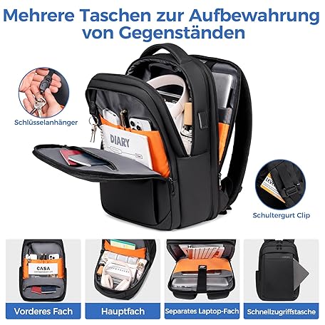 • Fenree.geer Men's Backpack - Hand Luggage Backpack 15.6 Inch Laptop Backpack Expandable (Waterproof & Anti-Theft) - Elegant Laptop Bag for Office, Travel, Commuting and School - Unisex Design, black