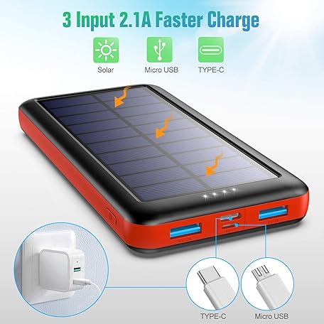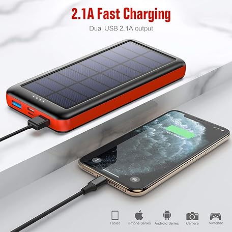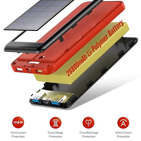 Thông tin sản phẩm Feob Solar Power Bank 26800 mAh, [2024 Upgrade Control IC] Solar Charger 2 USB Charging External Battery Mobile Phone Charger Camping Outdoor Compatible with iPhone 15/14/13 Pro Max, Samsung, Huawei