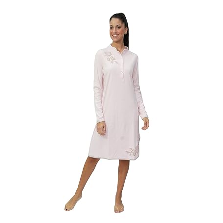 FIDA Elegantes Nachthemd aus warmer Baumwolle, tiefes Seraphim-Modell mit appliziertem Spitzenvolant, geeignet zum Stillen und für die Klinik., Rosa, 46