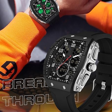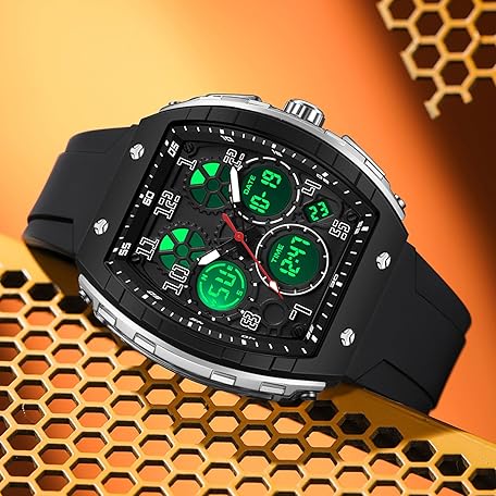 Sản phẩm findtime Rectangular Men's Watch Cool Design Creative Men's Watches Digital Analogue Quartz Wrist Watch with Double Time Timer Stopwatch 5ATM Waterproof White Sports Watch đang được bán với giá ưu đãi là $39.0438 tại nước Đức.