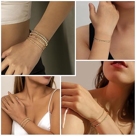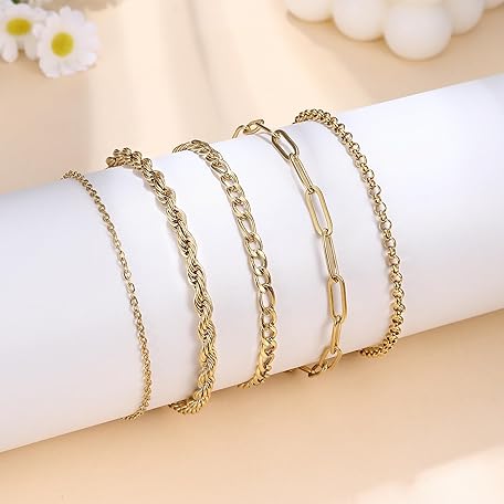 Sản phẩm Finrezio 3-5 Pieces Women's Gold 14 Carat Gold-Plated Stacking Bracelets Stainless Steel Figaro Beads Chain Bracelets Adjustable Bracelet Set Waterproof Gold Jewellery for Women đang được bán với giá ưu đãi là $17.5272 tại nước Đức.