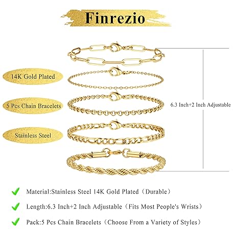 Thương hiệu Finrezio là cái tên nổi tiếng được rất nhiều khách hàng trên thế giới chọn lựa. Với kiểu dáng đẹp mắt, sang trọng, sản phẩm Finrezio 3-5 Pieces Women's Gold 14 Carat Gold-Plated Stacking Bracelets Stainless Steel Figaro Beads Chain Bracelets Adjustable Bracelet Set Waterproof Gold Jewellery for Women là sự lựa chọn hoàn hảo nếu bạn đang tìm mua một món cho riêng mình.