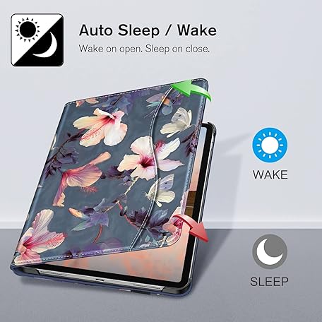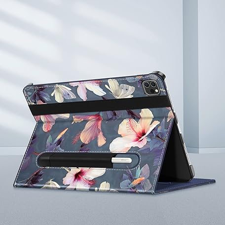 Thông tin sản phẩm Fintie Case for iPad Pro 11 Inch 4th Generation/3rd Gen/2nd Gen (2022/2021/2010 Model), Multi-Angle Folio Protective Case with Pen Holder, Document Compartment and Auto Sleep/Wake Function, Hibiscus