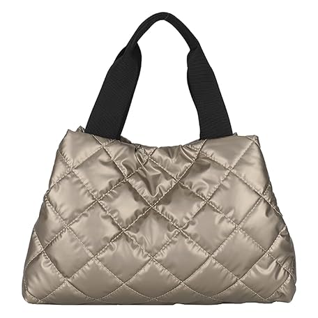 Fiorky Damen-Hobo-Handtasche, gesteppt, großes Fassungsvermögen, Tasche mit Tragegriff oben, weiche, einfarbige, tragbare Baumwolle for Shopper-Reisen (Champagner)