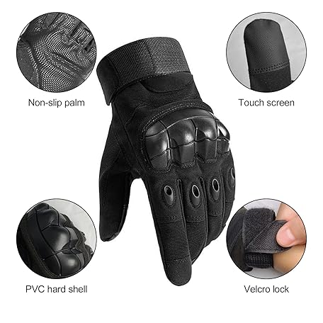 Thông tin sản phẩm Firschoie Tactical Gloves, Military Gloves, Motorcycle Gloves with Hard Knuckle Protection and 2-Finger Touch Screen, Suitable for Jungle Exploration, Trekking, Motorcycle, MTB Driving (Black M)