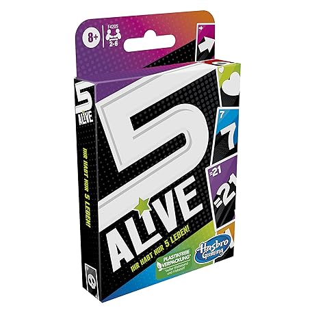 Five Alive Card Game, Quick Game for Kids and Families, Easy to Learn Family Game from 8 Years, 5 Alive Card Game for 2-6 Players