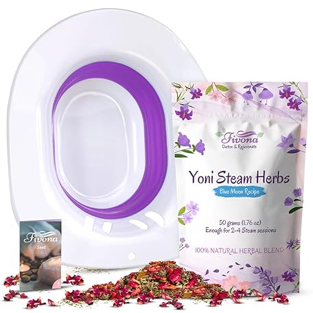 Fivona Yoni Over Toilet Seat Steam Set with Steaming Herbs, Blue Moon Recipe for Detoxification, Cleansing, pH Balance and Odour Control