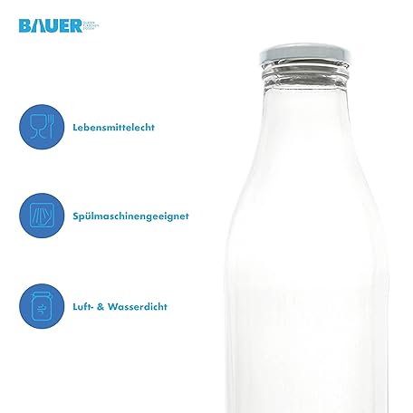 Thông tin sản phẩm FLASCHENBAUER - Milk Bottles 1 Litre - 4 x Glass Bottles 1 Litre - Twist-Off Lids + Replacement TO48 - Juice Bottle, Smoothie Bottle & Wide Mouth Bottle - Robust, Temperature Resistant [White Bottle]