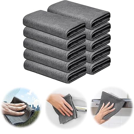 Thông tin sản phẩm flintronic Pack of 10 Thickened Magic Cleaning Cloths, Reusable Microfibre Cloths, Magic Cleaning Cloth, Thickened for Car, Glass, Kitchen, Tableware, Bathroom (30 x 30 cm)