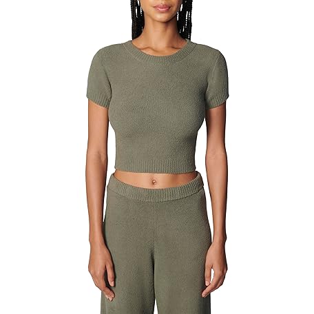 florence by mills Women's Plush Collection Cropped Short-Sleeved Top Pullover
