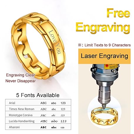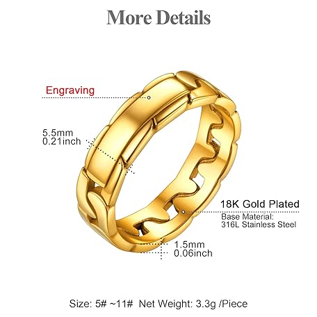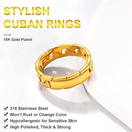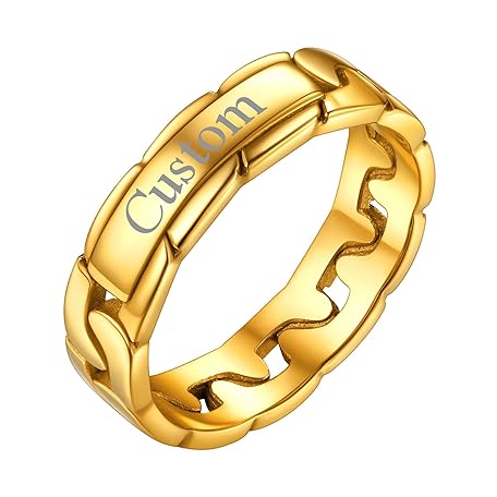 Sản phẩm FOCALOOK Curb Chain Design Wedding Ring Partner Ring for Men and Women 18 Carat Gold-Plated / Stainless Steel / Black Personalised Engagement Ring Proposal Ring Wedding Anniversary Fashion Jewellery đang được bán với giá ưu đãi là $27.4898 tại nước Đức.