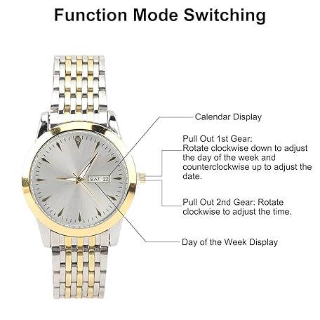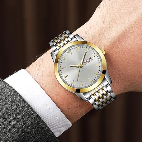 Thông tin sản phẩm Fockety Men's Quartz Watch, Fashion Classic Alloy Band Wrist Watches, Luminous Waterproof Dual Calendar Display Quartz Watch for Men Women, Car Date Sports (Gold and Silver Strap)