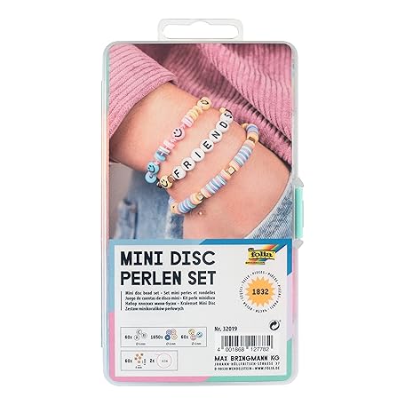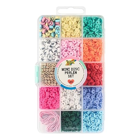 Thông tin sản phẩm folia 32019 Mini Disc Beads Set with Storage Box, 1,832 Pieces, 60 x Letter Beads, 1,650 x Mini Disc Beads, 60 x Smiley Beads, 60 x Gold Beads, 2 x Elastic Bands Each 2 m in White & Rose