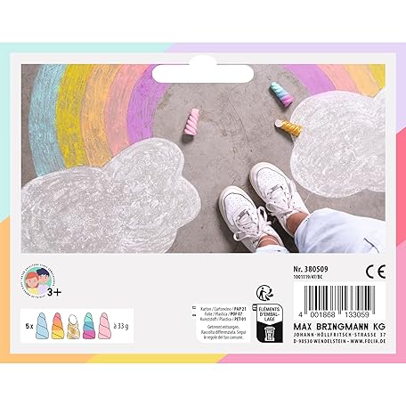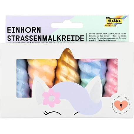 folia 380509 Unicorn Street Painting Chalk for Children, Pack of 5 in Rainbow Colours, Unicorn Chalk in Horn Design